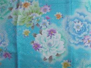 新品仮絵羽状態の正絹100パーセントの振袖でございます。